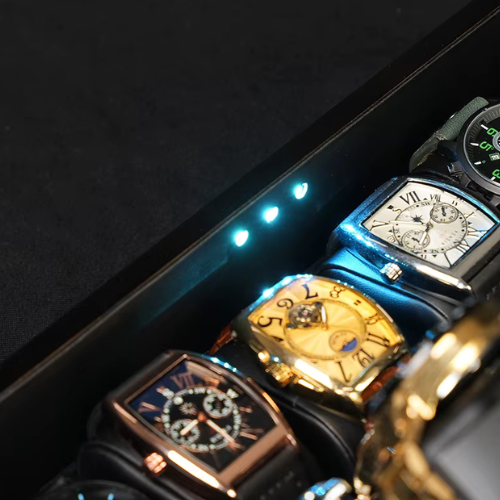 Signature lumineuse : un halo subtil qui révèle l’éclat de vos garde-temps, même dans l’ombre.